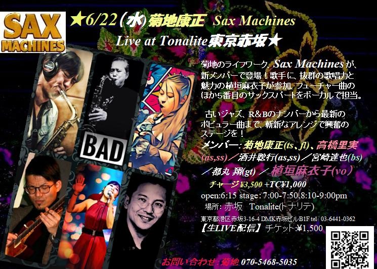 6/22に新生サックスマシーンズライブ